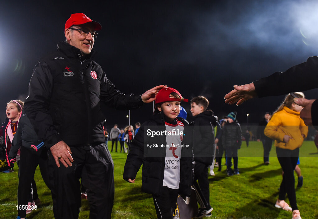 23 February 2019; Tyrone manager Mickey Harte with Michael Doran, age 7, following the Allianz Football League Division 1 Round 4 match between Tyrone and Monaghan at Healy Park in Omagh, Co Tyrone. Photo by Stephen McCarthy/Sportsfile