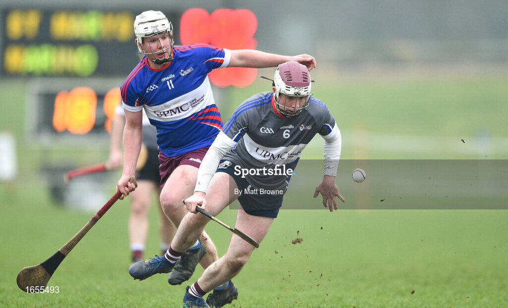 23 February 2019; Conor McAllister of St Mary's University College Belfast in action against Kevin Larkin of Marino Institute of Education during the Electric Ireland HE GAA Fergal Maher Cup Final match between Marino Institute of Education and St Mary's University College Belfast at Waterford IT in Waterford. Photo by Matt Browne/Sportsfile