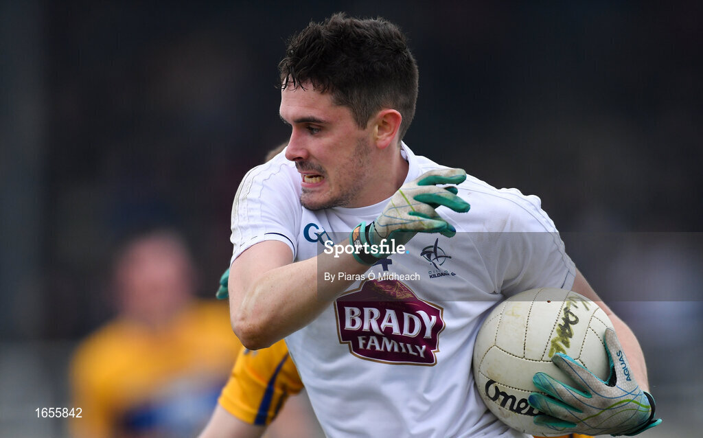 24 February 2019; David Hyland of Kildare in action against Cormac Murray of Clare during the Allianz Football League Division 2 Round 4 match between Kildare and Clare at St Conleth's Park in Newbridge, Co Kildare. Photo by Piaras Ó Mídheach/Sportsfile
