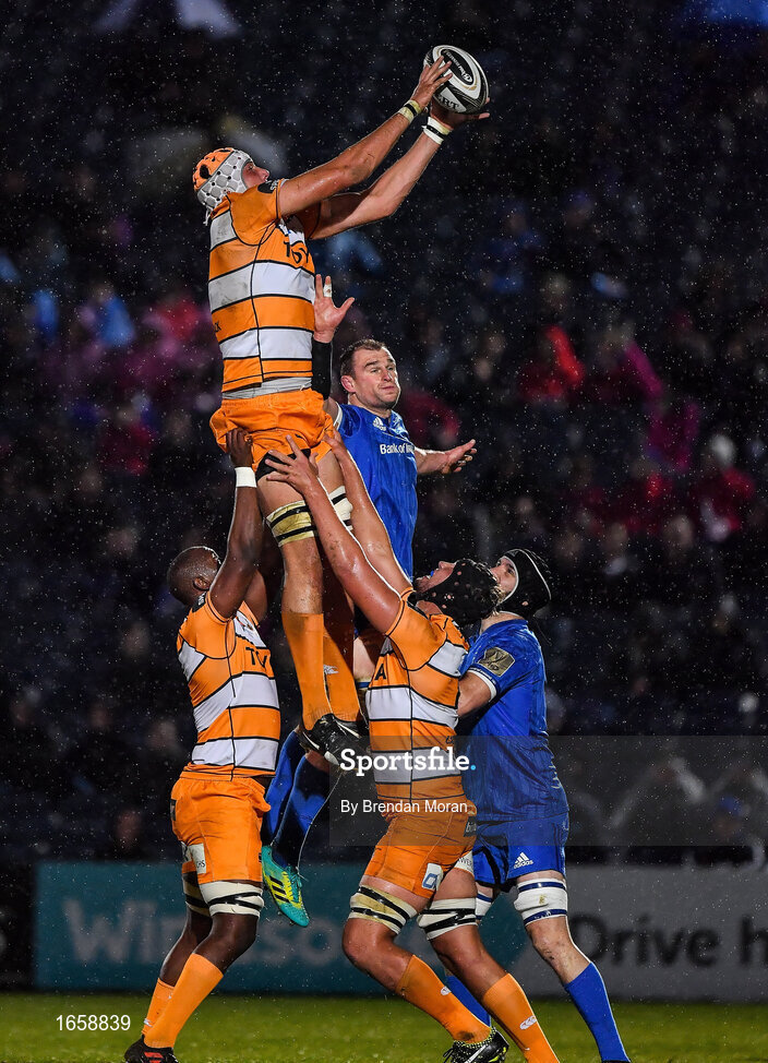 1 March 2019; JP du Preez of Toyota Cheetahs win possession in a lineout ahead of Rhys Ruddock of Leinster during the Guinness PRO14 Round 17 match between Leinster and Toyota Cheetahs at the RDS Arena in Dublin. Photo by Brendan Moran/Sportsfile