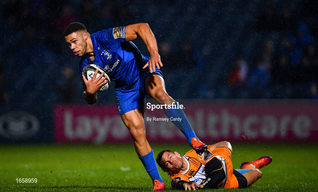 1 March 2019; Adam Byrne of Leinster is tackled by Shaun Venter of Toyota Cheetahs during the Guinness PRO14 Round 17 match between Leinster and Toyota Cheetahs at the RDS Arena in Dublin. Photo by Ramsey Cardy/Sportsfile