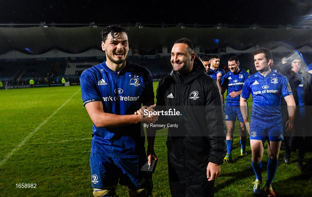 1 March 2019; Man of the match Max Deegan of Leinster, left, with team-mate Dave Kearney after the Guinness PRO14 Round 17 match between Leinster and Toyota Cheetahs at the RDS Arena in Dublin. Photo by Ramsey Cardy/Sportsfile