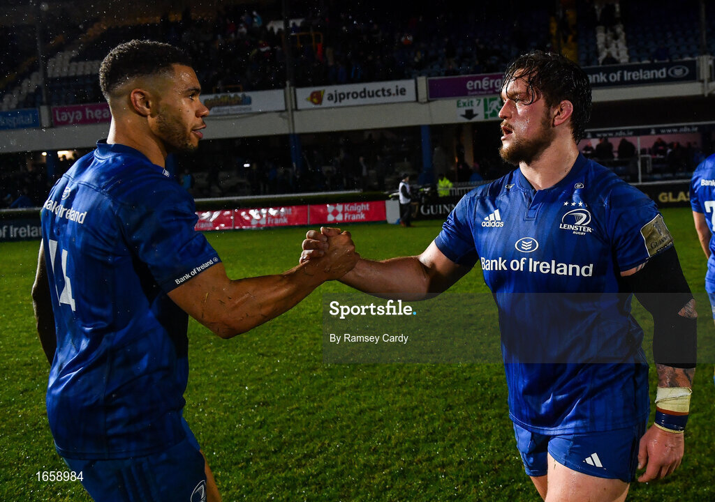 1 March 2019; Leinster team-mates Adam Byrne, left and Andrew Porter after the Guinness PRO14 Round 17 match between Leinster and Toyota Cheetahs at the RDS Arena in Dublin. Photo by Ramsey Cardy/Sportsfile