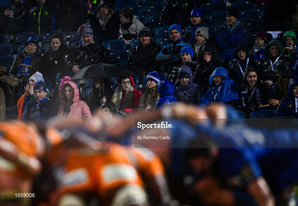1 March 2019; Supporters watch a scrum during the Guinness PRO14 Round 17 match between Leinster and Toyota Cheetahs at the RDS Arena in Dublin. Photo by Ramsey Cardy/Sportsfile