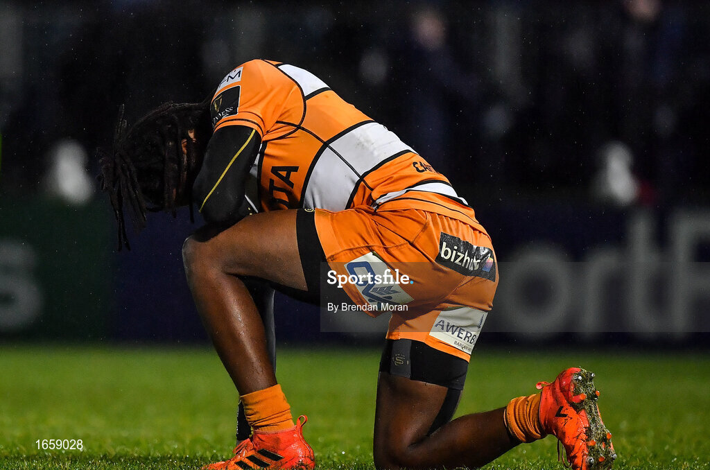 1 March 2019; Rabz Maxwane of Toyota Cheetahs after the Guinness PRO14 Round 17 match between Leinster and Toyota Cheetahs at the RDS Arena in Dublin. Photo by Brendan Moran/Sportsfile