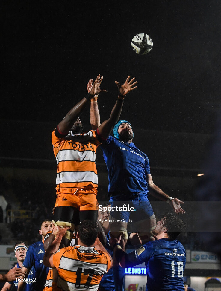 1 March 2019; Mick Kearney of Leinster contests a lineout with Sintu Manjezi of Toyota Cheetahs during the Guinness PRO14 Round 17 match between Leinster and Toyota Cheetahs at the RDS Arena in Dublin. Photo by Ramsey Cardy/Sportsfile