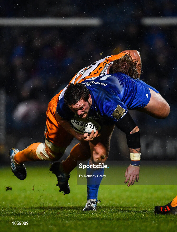 1 March 2019; Andrew Porter of Leinster is tackled by Luan de Bruin of Toyota Cheetahs during the Guinness PRO14 Round 17 match between Leinster and Toyota Cheetahs at the RDS Arena in Dublin. Photo by Ramsey Cardy/Sportsfile
