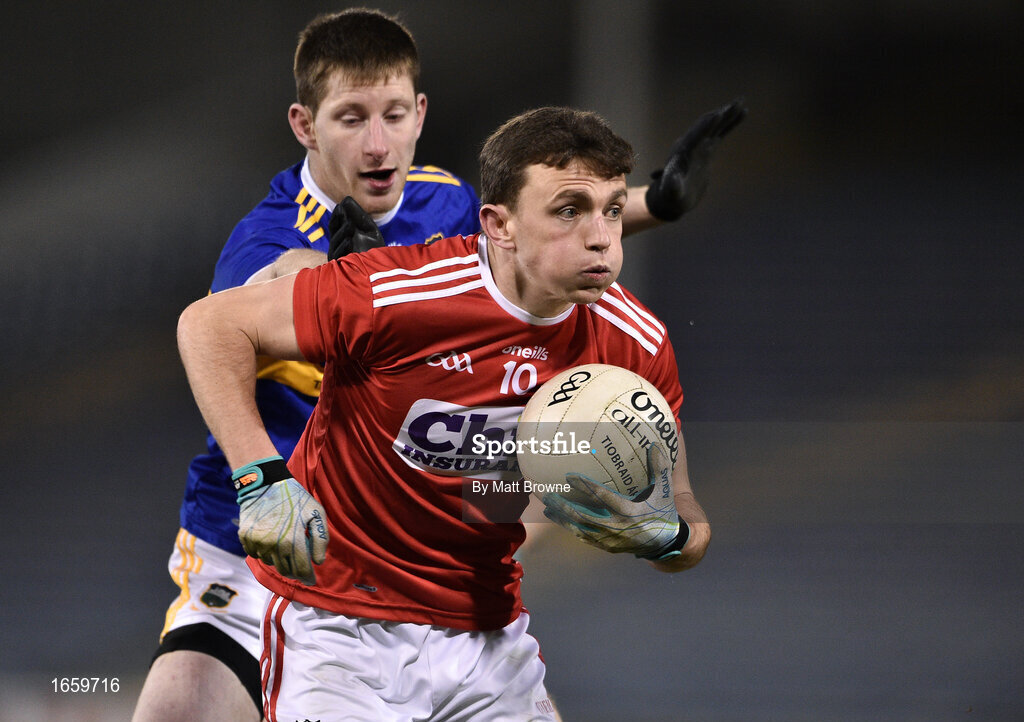 2 March 2019; Mark Collins of Cork in action against Jimmy Feehan of Tipperary during the Allianz Football League Division 2 Round 5 match between Tipperary and Cork at Semple Stadium in Thurles, Tipperary. Photo by Matt Browne/Sportsfile