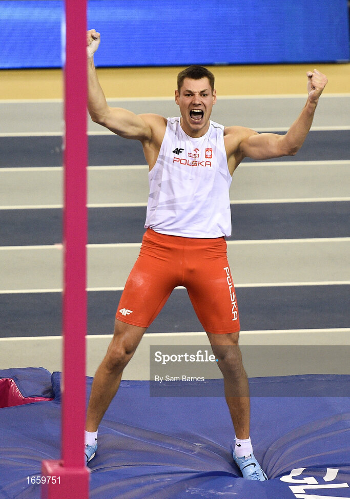 2 March 2019; Pawel Wojciechowski of Poland celebrates a clearance whilst competing in the Men's Pole Vault event during day two of the European Indoor Athletics Championships at Emirates Arena in Glasgow, Scotland. Photo by Sam Barnes/Sportsfile