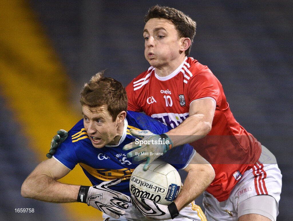 2 March 2019; Brian Fox of Tipperary in action against Mark Collins of Cork during the Allianz Football League Division 2 Round 5 match between Tipperary and Cork at Semple Stadium in Thurles, Tipperary. Photo by Matt Browne/Sportsfile