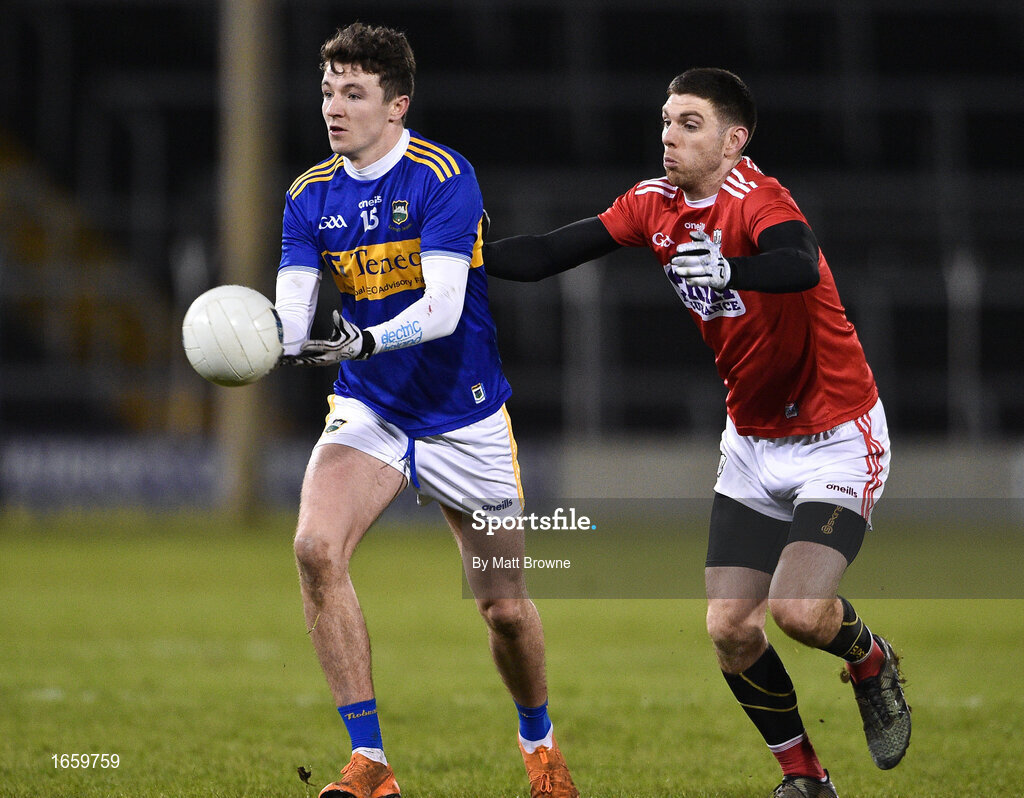 2 March 2019; Jack Kennedy of Tipperary in action against Luke Connolly of Cork during the Allianz Football League Division 2 Round 5 match between Tipperary and Cork at Semple Stadium in Thurles, Tipperary. Photo by Matt Browne/Sportsfile