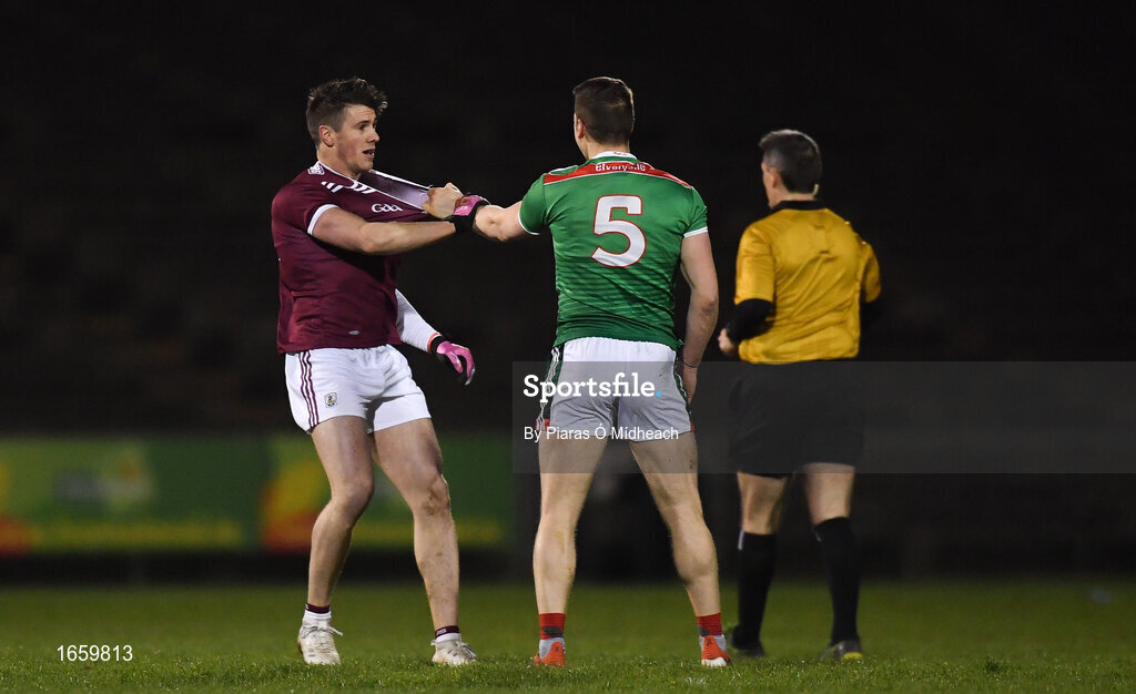2 March 2019; Lee Keegan of Mayo tangles with Shane Walsh of Galway during the Allianz Football League Division 1 Round 5 match between Mayo and Galway at Elverys MacHale Park in Castlebar, Mayo. Photo by Piaras Ó Mídheach/Sportsfile