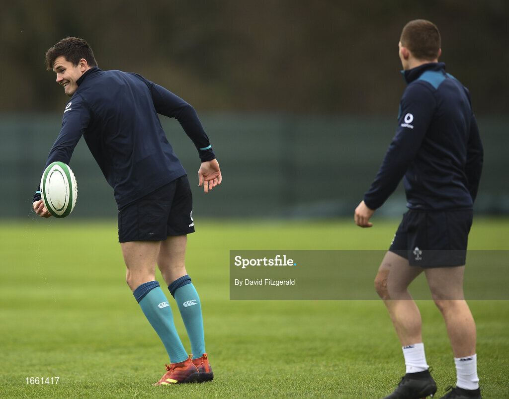 6 March 2019; Jacob Stockdale, left, and Keith Earls during Ireland Rugby Squad Training at Carton House in Maynooth, Kildare. Photo by David Fitzgerald/Sportsfile