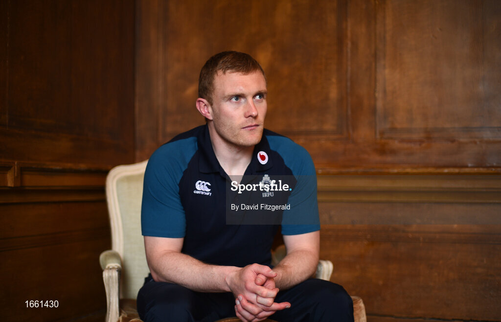 6 March 2019; Keith Earls poses for a portrait following an Ireland Rugby Press Conference at Carton House in Maynooth, Kildare. Photo by David Fitzgerald/Sportsfile