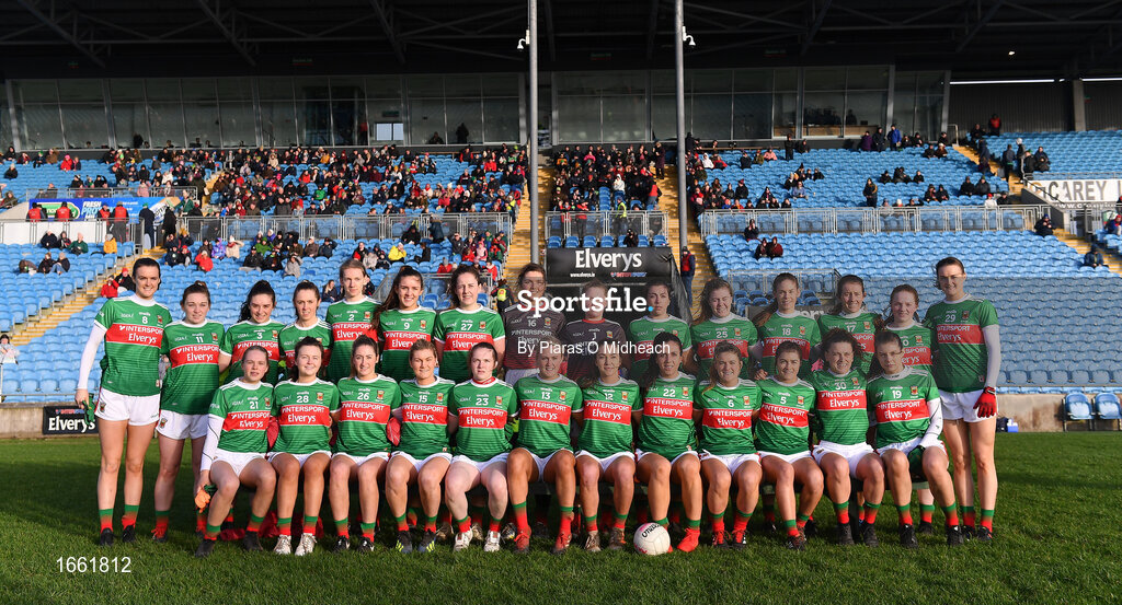 2 March 2019; The Mayo squad before the Lidl Ladies NFL Division 1 Round 4 match between Mayo and Galway at Elverys MacHale Park in Castlebar, Mayo. Photo by Piaras Ó Mídheach/Sportsfile