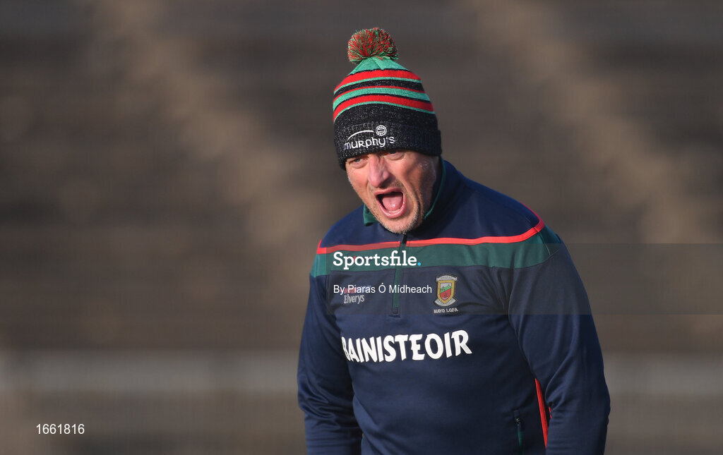 2 March 2019; Mayo manager Peter Leahy before the Lidl Ladies NFL Division 1 Round 4 match between Mayo and Galway at Elverys MacHale Park in Castlebar, Mayo. Photo by Piaras Ó Mídheach/Sportsfile