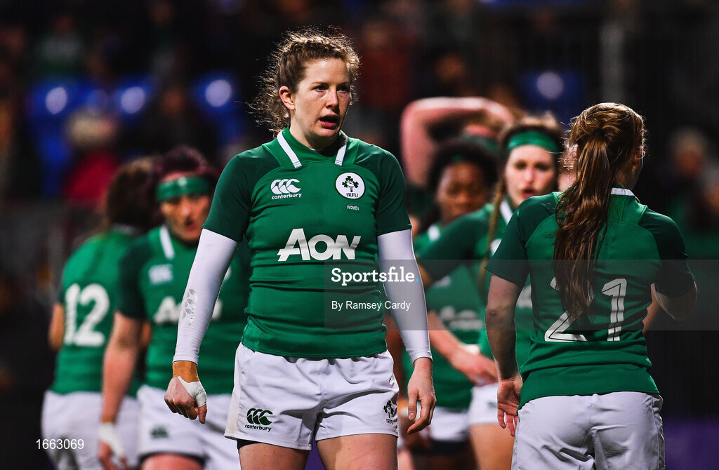 9 March 2019; Lauren Delany of Ireland dejected after conceding a try during the Women's Six Nations Rugby Championship match between Ireland and France at Energia Park in Donnybrook, Dublin. Photo by Ramsey Cardy/Sportsfile
