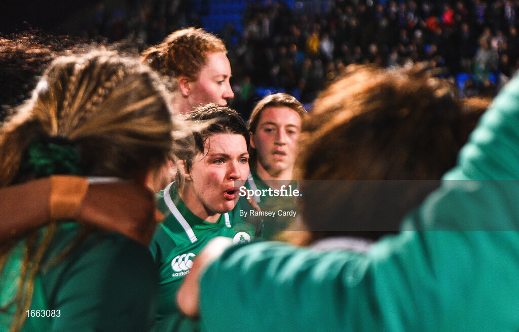 9 March 2019; Ireland captain Ciara Griffin speaks to her team following their defeat in the Women's Six Nations Rugby Championship match between Ireland and France at Energia Park in Donnybrook, Dublin. Photo by Ramsey Cardy/Sportsfile