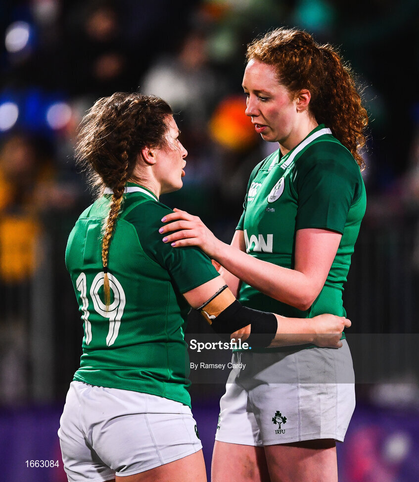 9 March 2019; Anna Caplice, left, and Aoife McDermott of Ireland following their defeat in the Women's Six Nations Rugby Championship match between Ireland and France at Energia Park in Donnybrook, Dublin. Photo by Ramsey Cardy/Sportsfile