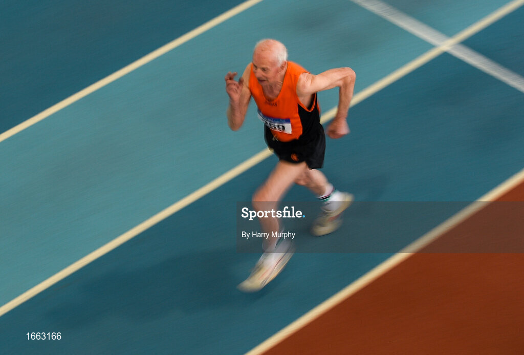 10 March 2019; Patrick Naughton of Nenagh Olympic A.C. competing in the 60m during the Irish Life Health Masters Indoors Championships at AIT in Athlone, Co Westmeath. Photo by Harry Murphy/Sportsfile