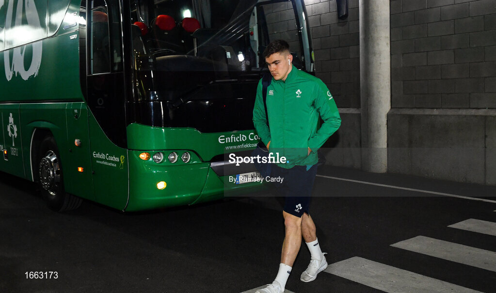 10 March 2019; Garry Ringrose of Ireland arrives prior to the Guinness Six Nations Rugby Championship match between Ireland and France at the Aviva Stadium in Dublin. Photo by Ramsey Cardy/Sportsfile
