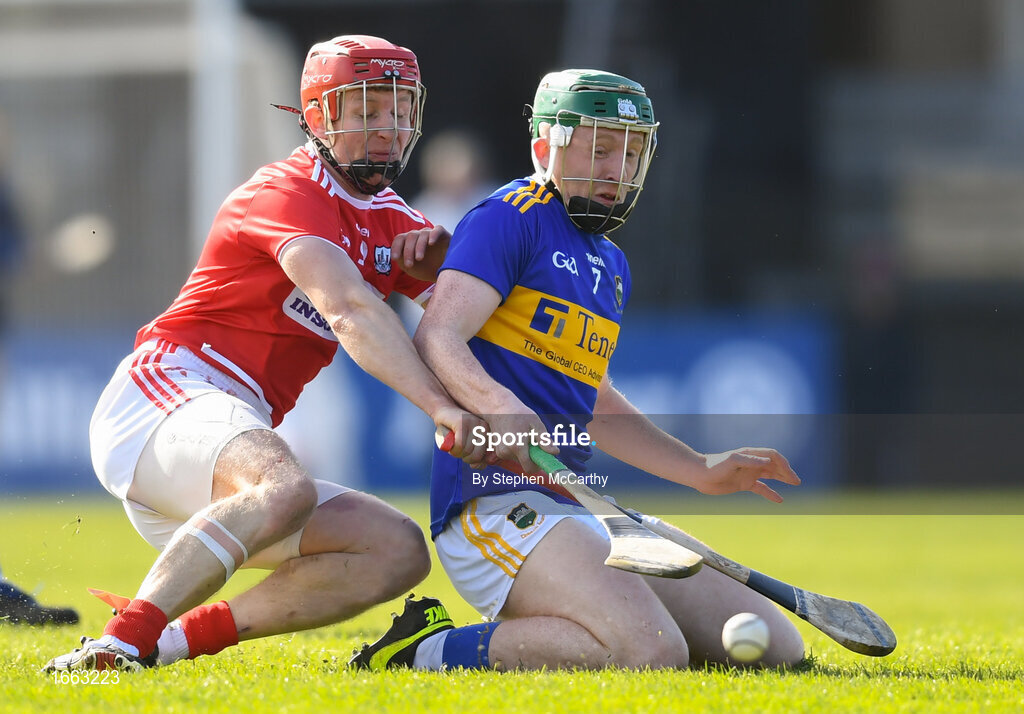10 March 2019; Robert Byrne of Tipperary in action against Bill Cooper of Cork during the Allianz Hurling League Division 1A Round 5 match between Cork and Tipperary at Páirc Uí Rinn in Cork. Photo by Stephen McCarthy/Sportsfile