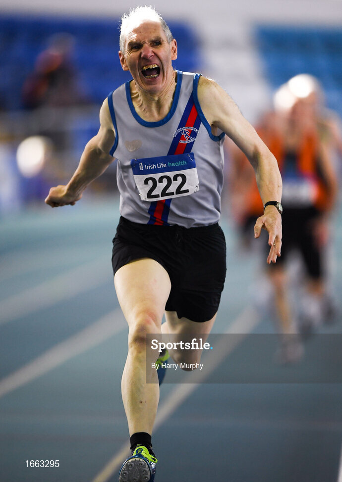 10 March 2019; Peadar McGing of Dundrum South Dublin A.C. celebrates winning the 400m during the Irish Life Health Masters Indoors Championships at AIT in Athlone, Co Westmeath. Photo by Harry Murphy/Sportsfile