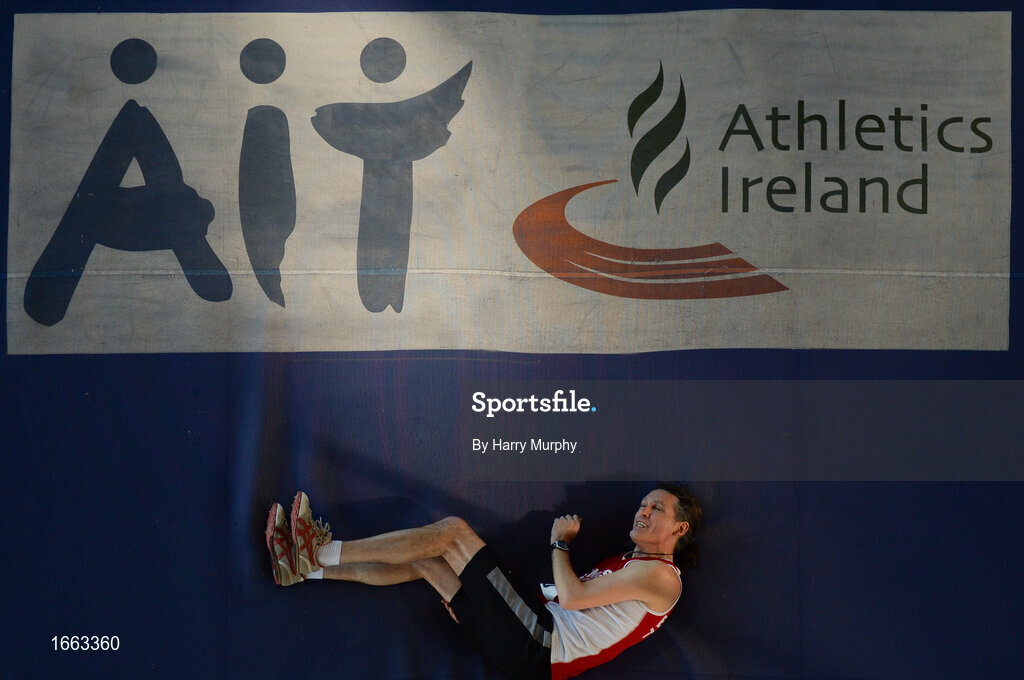 10 March 2019; Michael Clune of Ennis Track A.C. competing in the High Jump during the Irish Life Health Masters Indoors Championships at AIT in Athlone, Co Westmeath. Photo by Harry Murphy/Sportsfile