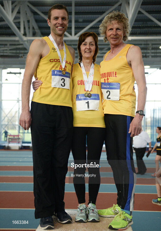 10 March 2019; Ross Alexander with his Mother, Esme Alexander and Father, Matt Alexander, all of Coolquill A.C. during the Irish Life Health Masters Indoors Championships at AIT in Athlone, Co Westmeath. Photo by Harry Murphy/Sportsfile
