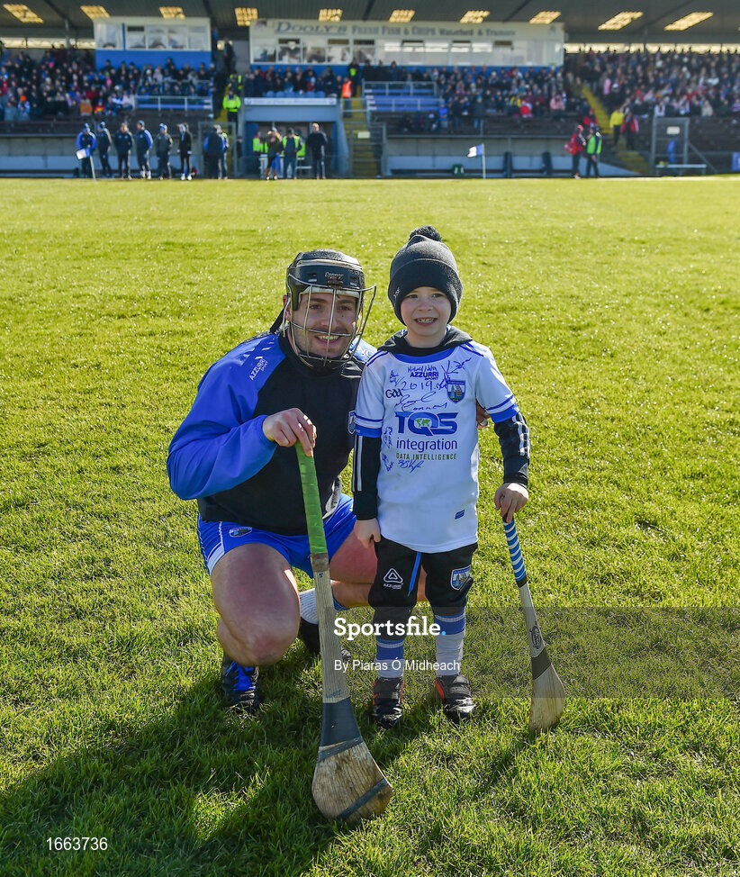 10 March 2019; Club Déise mascot Oisín Fogarty, age 6, from Ballycullane, Dungarvan with captain Noel Connors before the Allianz Hurling League Division 1B Round 5 match between Waterford and Galway at Walsh Park in Waterford. Photo by Piaras Ó Mídheach/Sportsfile