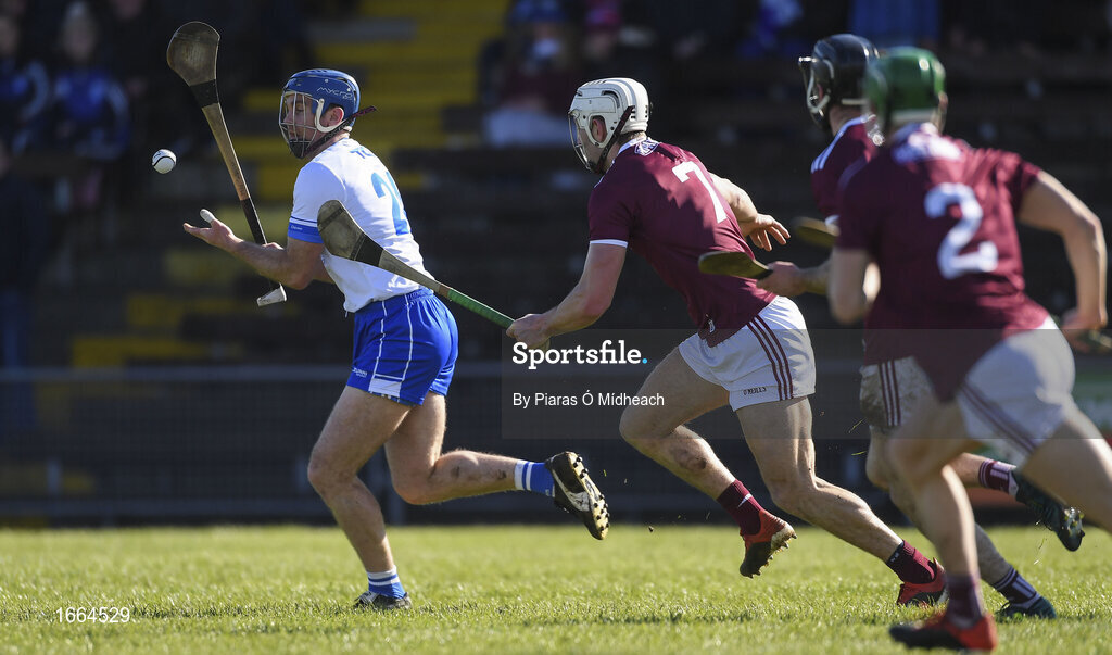 10 March 2019; Michael Walsh of Waterford under pressure from Galway defenders during the Allianz Hurling League Division 1B Round 5 match between Waterford and Galway at Walsh Park in Waterford. Photo by Piaras Ó Mídheach/Sportsfile