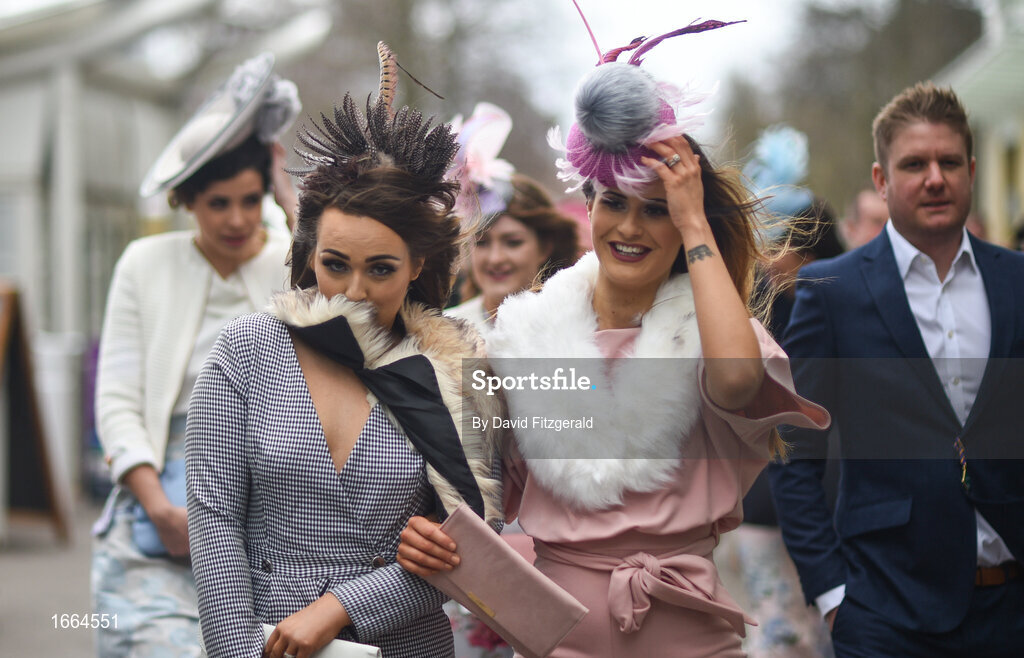 13 March 2019; Racegoers hold on to their hats prior to racing on Day Two of the Cheltenham Racing Festival at Prestbury Park in Cheltenham, England. Photo by David Fitzgerald/Sportsfile