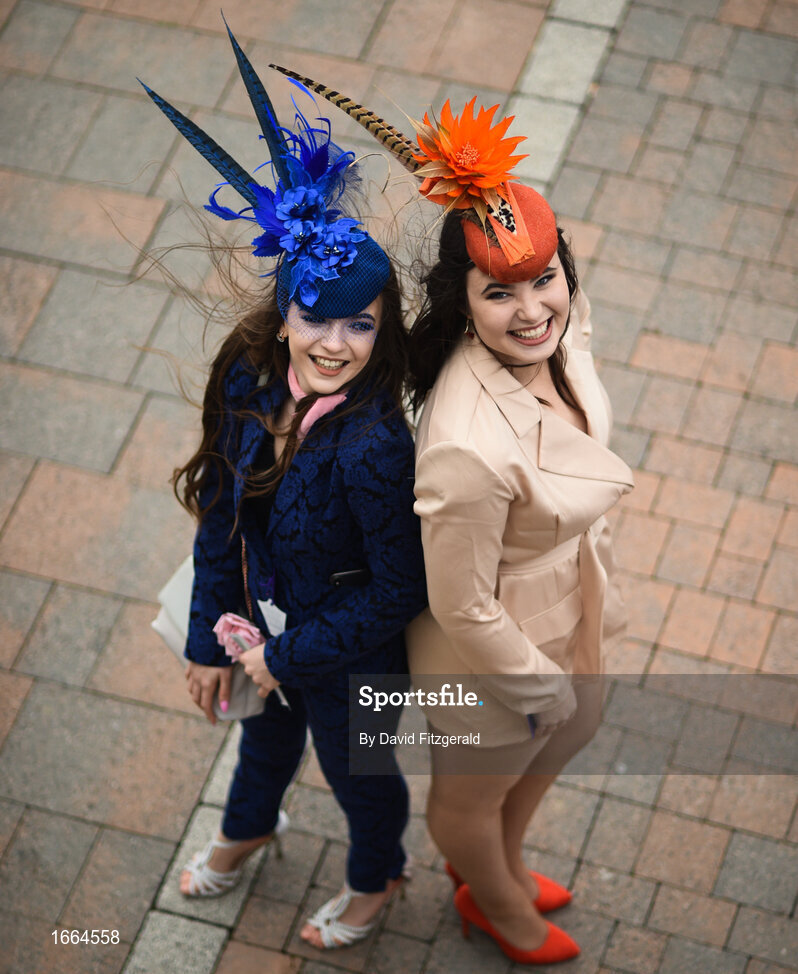 13 March 2019; Courtney Taylor, left, from Wincham, England, and Tamsin Grainger from Cheltenham, England, prior to racing on Day Two of the Cheltenham Racing Festival at Prestbury Park in Cheltenham, England. Photo by David Fitzgerald/Sportsfile