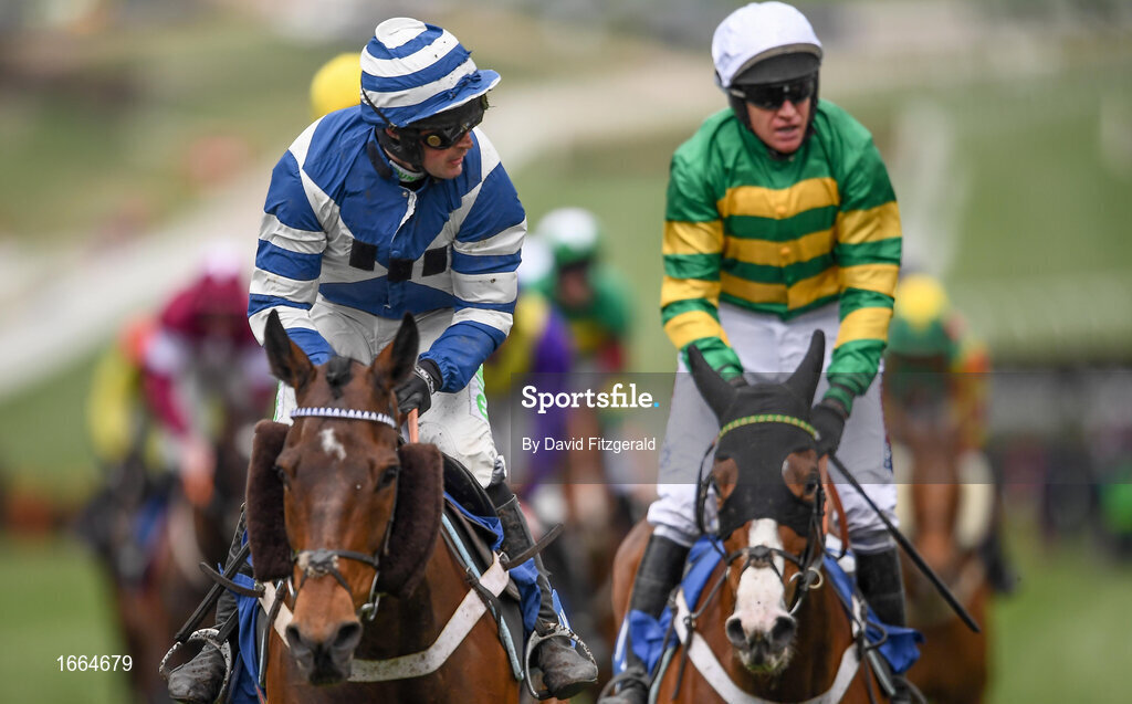 13 March 2019; William Henry, with Nico de Boinville up, left, looks across to the big screen to view a photo finish after winning the Coral Cup Handicap Hurdle on Day Two of the Cheltenham Racing Festival at Prestbury Park in Cheltenham, England. Photo by David Fitzgerald/Sportsfile