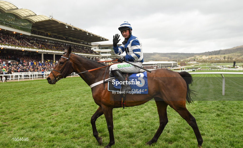 13 March 2019; Nico de Boinville celebrates on William Henry after winning the Coral Cup Handicap Hurdle on Day Two of the Cheltenham Racing Festival at Prestbury Park in Cheltenham, England. Photo by David Fitzgerald/Sportsfile