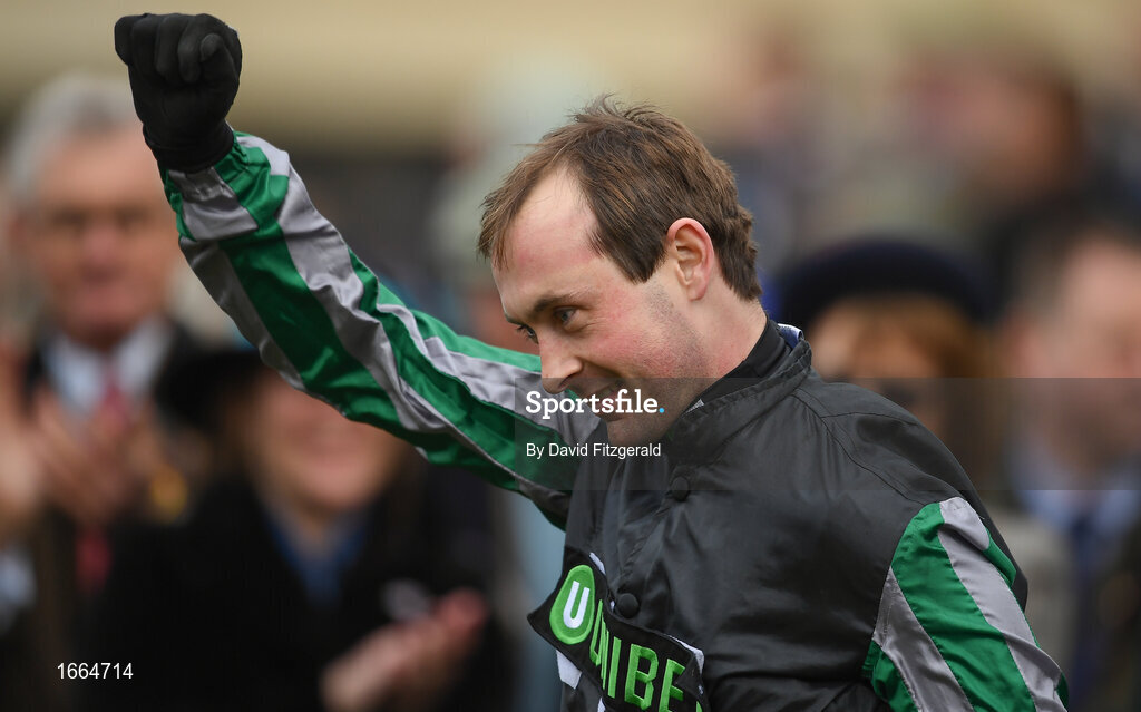 13 March 2019; Nico de Boinville celebrates with the cup after winning the Betway Queen Mother Champion Chase on Altior on Day Two of the Cheltenham Racing Festival at Prestbury Park in Cheltenham, England. Photo by David Fitzgerald/Sportsfile