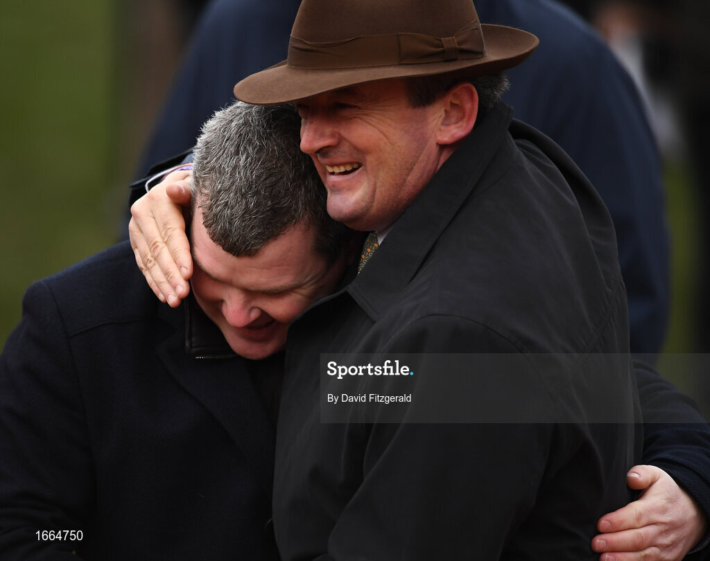 13 March 2019; Eddie O'Leary of Gigginstown Stud, right, and trainer Gordon Elliott celebrate after Tiger Roll won the Glenfarclas Cross Country Chase on Day Two of the Cheltenham Racing Festival at Prestbury Park in Cheltenham, England. Photo by David Fitzgerald/Sportsfile