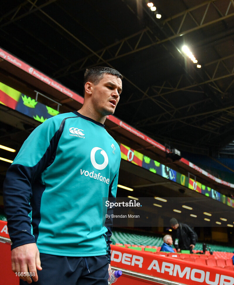 15 March 2019; Jonathan Sexton arrives for the Ireland rugby captain's run at the Principality Stadium in Cardiff, Wales. Photo by Brendan Moran/Sportsfile