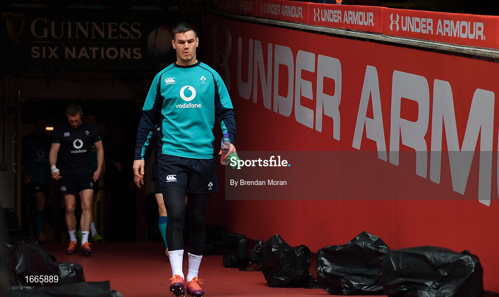 15 March 2019; Jonathan Sexton arrives for the Ireland rugby captain's run at the Principality Stadium in Cardiff, Wales. Photo by Brendan Moran/Sportsfile