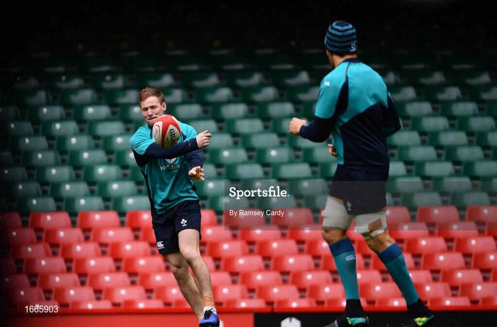 15 March 2019; Kieran Marmion during the Ireland rugby captain's run at the Principality Stadium in Cardiff, Wales. Photo by Ramsey Cardy/Sportsfile