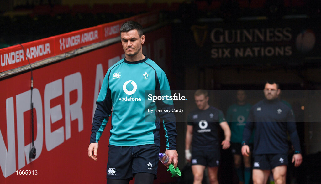 15 March 2019; Jonathan Sexton during the Ireland rugby captain's run at the Principality Stadium in Cardiff, Wales. Photo by Ramsey Cardy/Sportsfile