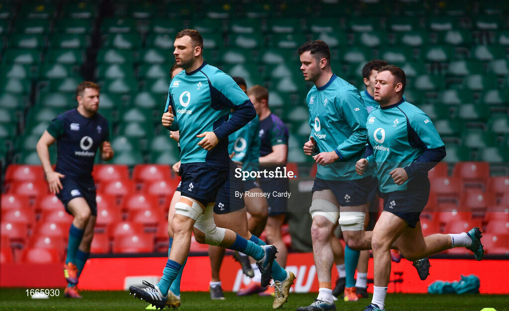 15 March 2019; Tadhg Beirne and James Ryan during the Ireland rugby captain's run at the Principality Stadium in Cardiff, Wales. Photo by Ramsey Cardy/Sportsfile