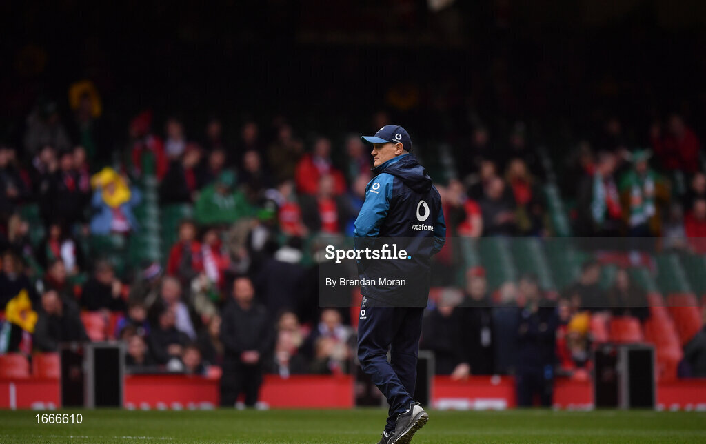 16 March 2019; Ireland head coach Joe Schmidt prior to the Guinness Six Nations Rugby Championship match between Wales and Ireland at the Principality Stadium in Cardiff, Wales. Photo by Brendan Moran/Sportsfile