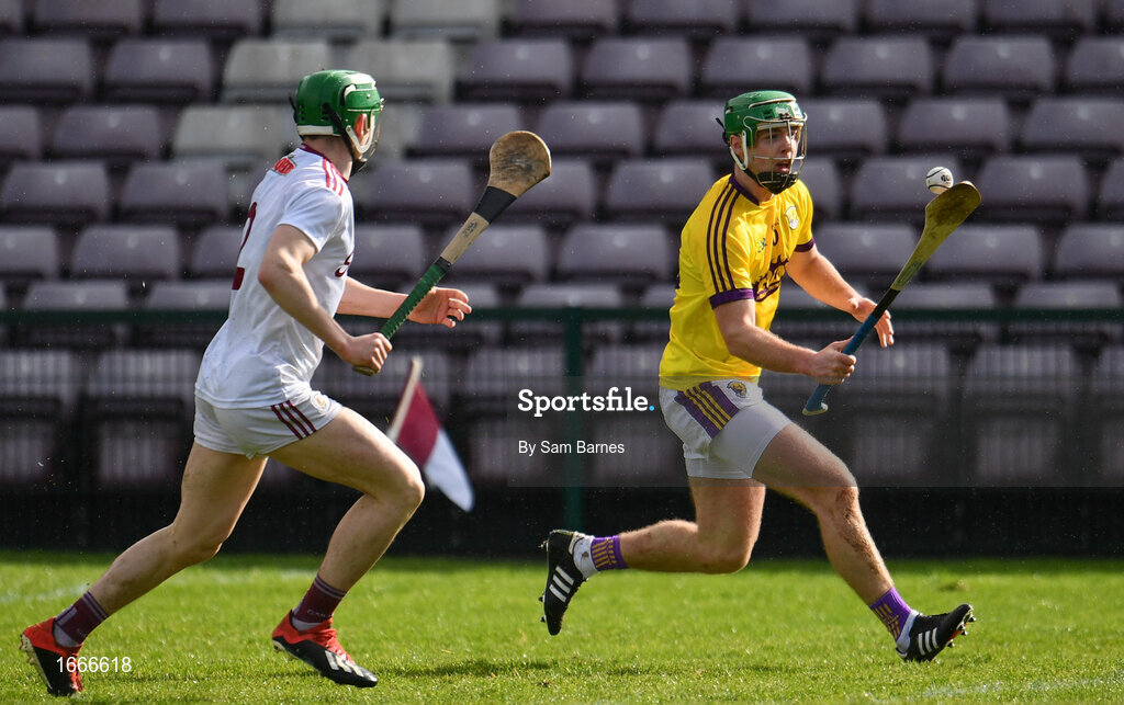 16 March 2019; Aidan Nolan of Wexford in action against Jack Grealish of Galway during the Allianz Hurling League Division 1 Quarter-Final match between Galway and Wexford at Pearse Stadium in Salthill, Galway. Photo by Sam Barnes/Sportsfile