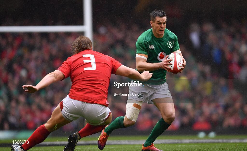 16 March 2019; Jonathan Sexton of Ireland in action against Tomas Francis of Wales during the Guinness Six Nations Rugby Championship match between Wales and Ireland at the Principality Stadium in Cardiff, Wales. Photo by Ramsey Cardy/Sportsfile