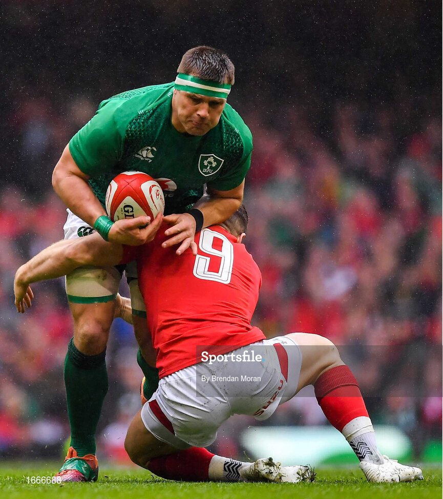 16 March 2019; CJ Stander of Ireland is tackled by Gareth Davies of Wales during the Guinness Six Nations Rugby Championship match between Wales and Ireland at the Principality Stadium in Cardiff, Wales. Photo by Brendan Moran/Sportsfile