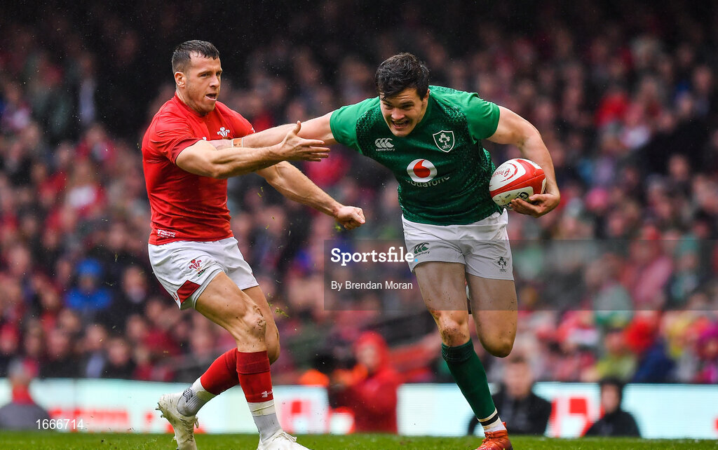 16 March 2019; Jacob Stockdale of Ireland is tackled by Gareth Davies of Wales during the Guinness Six Nations Rugby Championship match between Wales and Ireland at the Principality Stadium in Cardiff, Wales. Photo by Brendan Moran/Sportsfile