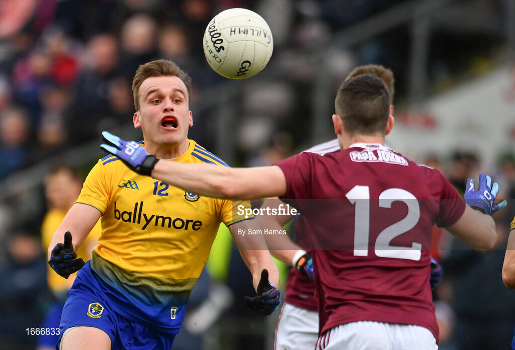 16 March 2019; Enda Smith of Roscommon in action against Johnny Heaney of Galway during the Allianz Football League Division 1 Round 6 match between Galway and Roscommon at Pearse Stadium in Salthill, Galway. Photo by Sam Barnes/Sportsfile