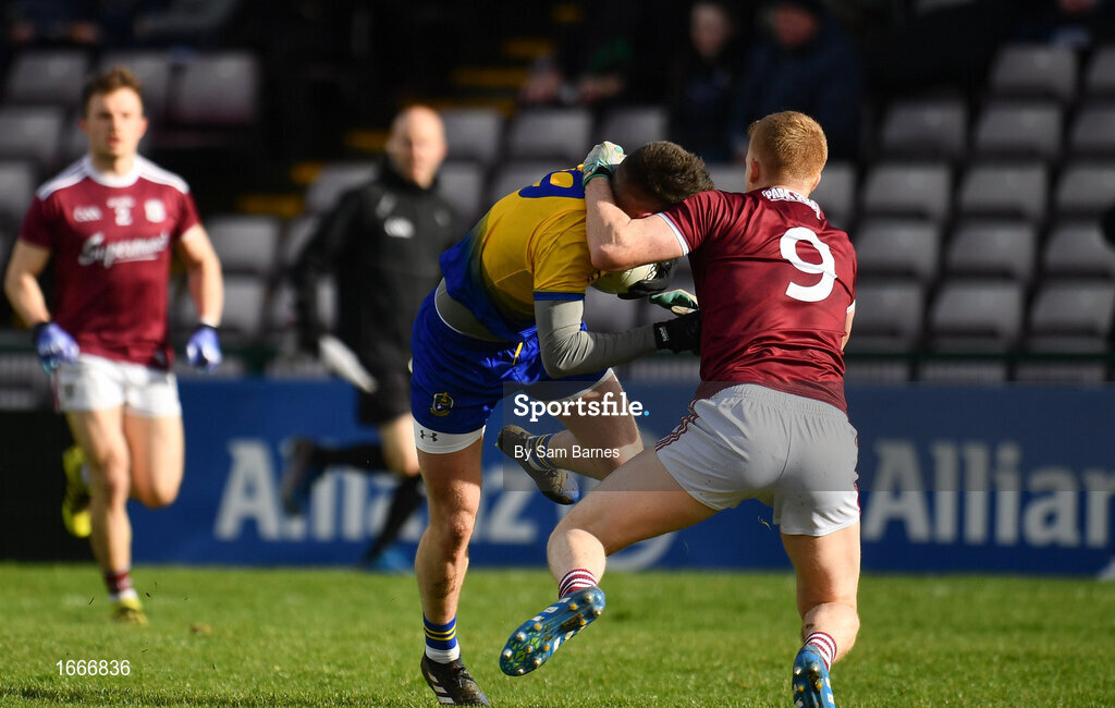 16 March 2019; Shane Killoran of Roscommon in action against Ciarán Duggan of Galway during the Allianz Football League Division 1 Round 6 match between Galway and Roscommon at Pearse Stadium in Salthill, Galway. Photo by Sam Barnes/Sportsfile