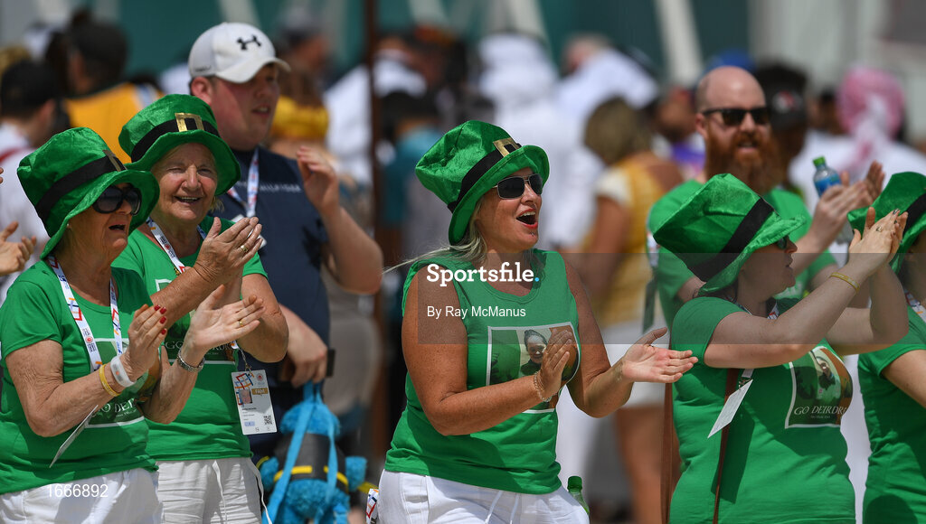 16 March 2019; Team Ireland family supporters cheer on the competitors during the Kayaking events on Day Two of the 2019 Special Olympics World Games in the Abu Dhabi Yacht and Sailing Club in Abu Dhabi, United Arab Emirates. Photo by Ray McManus/Sportsfile